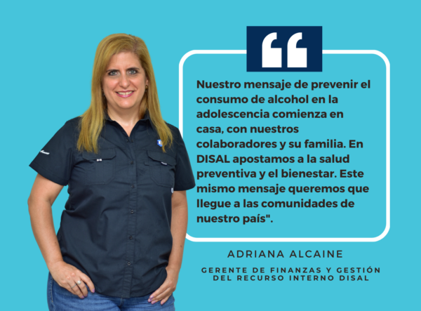 Desde que comenzó “Pospone y Disfrutarás” los mensajes internos y externos para generar conciencia y unirse a la campaña no se han detenido. “Es un trabajo constante porque cada mes compartimos datos y consejos en las redes sociales y en nuestros canales de comunicación interna; en la empresa promovemos la participación de las personas en las actividades concernientes al tema”, menciona Adriana Alcaine, Gerente de Finanzas y Gestión del Recurso Interno. “Y vamos por más, esto es parte de nuestra cultura organizacional. Queremos que cada persona que sea parte de la familia DISAL se convierta en un agente de cambio y que promueva dos mensajes: en la adolescencia, ni una gota de alcohol; y en la adultez, una apuesta por el consumo responsable”.